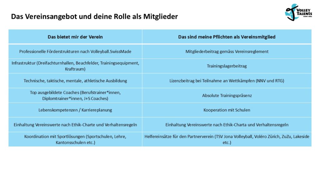 Volley Talents Verhaltensregeln